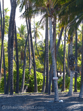 I’ve read that it’s possible to visit the place, being open one day a month, but I’m not sure that’s still true since the contact information on the sign has been erased. The encirclement of barbed wire and liberal use of Kapu signs don’t hint at any kind of welcome. Kapu is a Hawaiian word with several meanings including ‘sacred,’ ‘forbidden,’ and its modern day usage of “no trespassing’ or ‘keep out.’