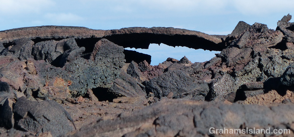 A lot of this trail passes over rounded pahoehoe lava. I prefer hiking on this to sharp a’a lava. At least with pahoehoe I have a solid surface to place my foot and to push off from. That said, there are times when the surface crackles and I’m keenly aware the area is riddled with lava tubes, some topped with a thin crust that could easily give way. That’s one reason why I try not to stray from the trail.