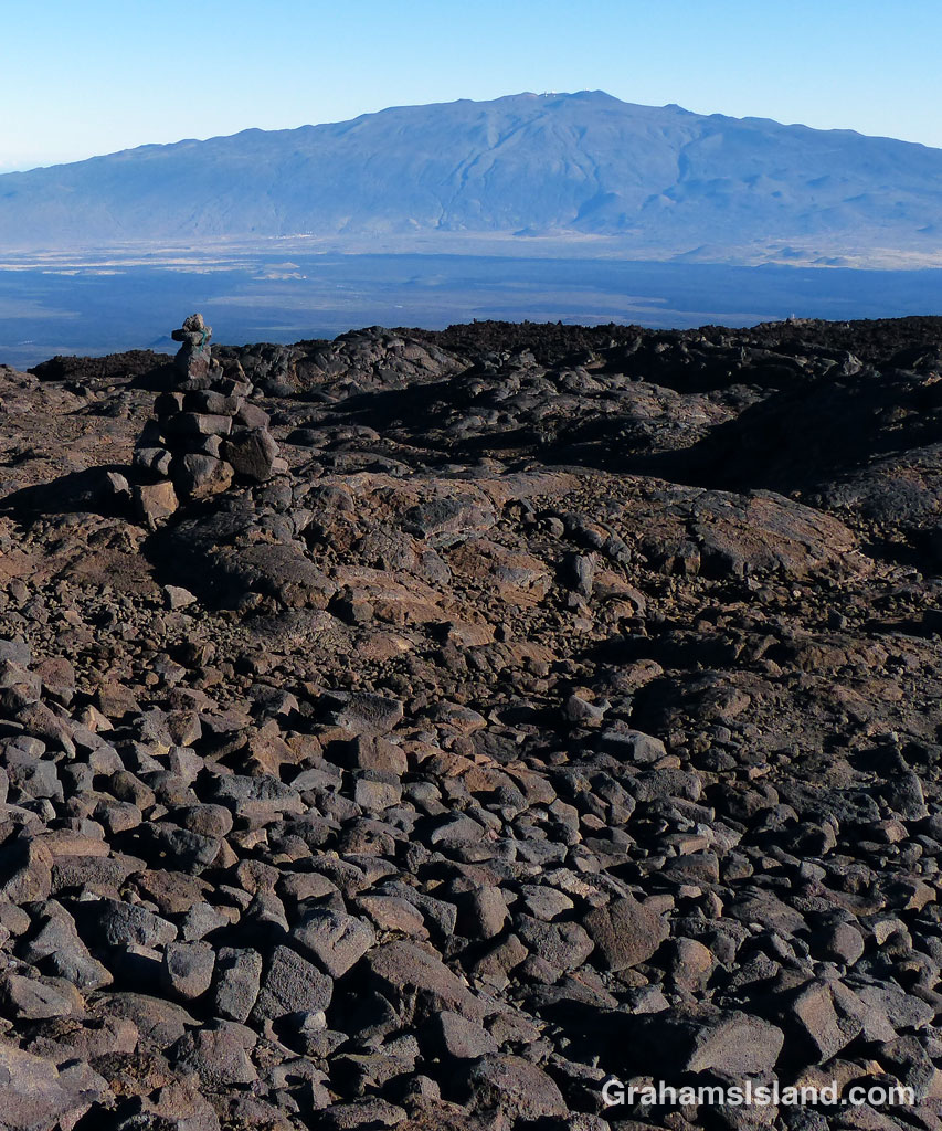 There are two hiking routes up Mauna Loa. One is the Mauna Loa Trail starting out from Hawaii Volcanoes National Park. This is a 40 miles or so round trip, a multi-day hike requiring a permit. See nps.gov/havo/planyourvisit/hike_maunaloa.htm for information. The other trail is the Observatory Trail, which is reached from Saddle Road. This is the trail I took.