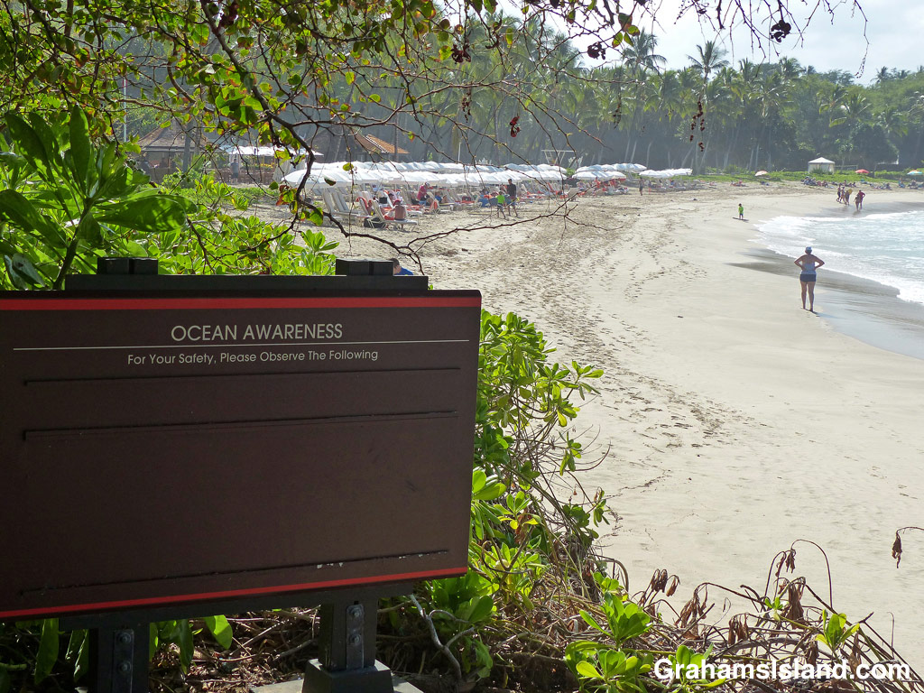 Ocean awareness sign at a South Kohala coast resort