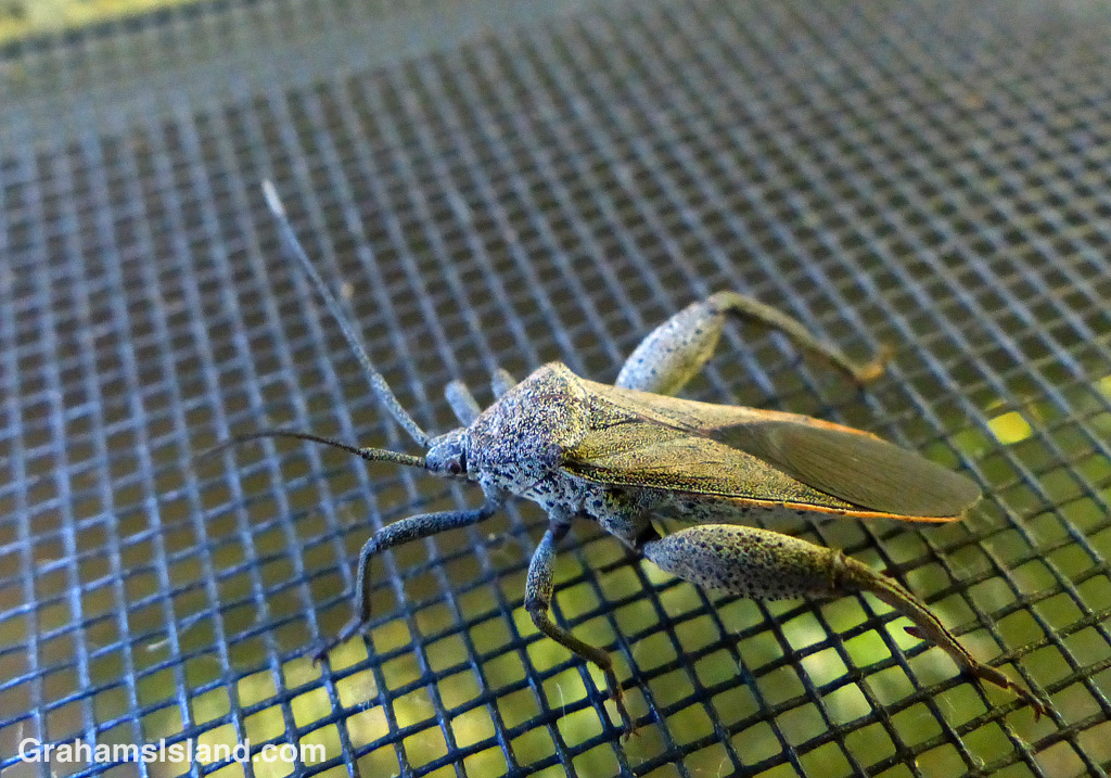 This bug (Physomerus grossipes) is a fairly recent introduction to Hawaii, most likely sneaking in on an imported plant. It’s from the family Coreidae, otherwise known as leaf footed bugs. It feeds by sucking juices out of various plants, including sweet potatoes. I found this one wandering across a window screen, some distance from anything edible.
