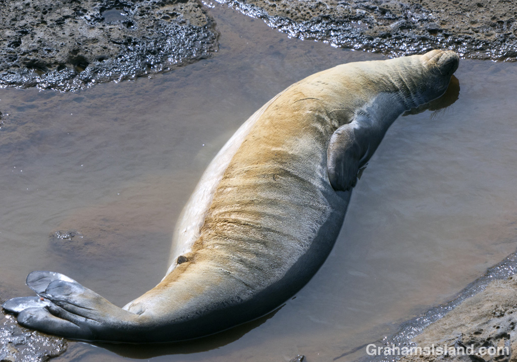 One thing that hadn’t changed from previous sightings was his demeanor and activity on shore. Once again he looked supremely relaxed, stretched out in a tide pool.