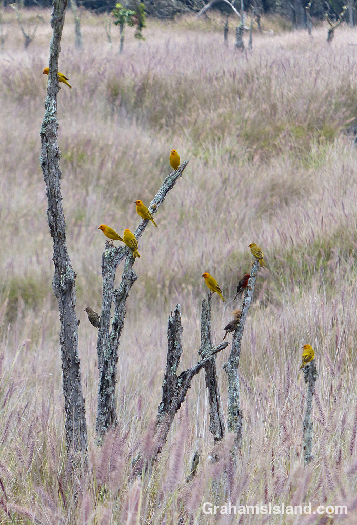 A flock of finches I watched this flock of finches take off, settle, take off again, settle again. Saffron finches predominated, but there were several house finches, and I think I also glimpsed a couple of other types. Like Loading...