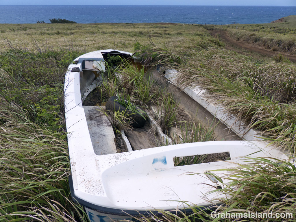 Thanks for checking out the blog. I’m glad you enjoyed some of the posts. This photo was taken at the east end of Upolu Airport in North Kohala. The boat’s visibility comes and goes depending on how well the grass is doing. Sadly there are also a few piles of less-interesting discarded trash in the vicinity.