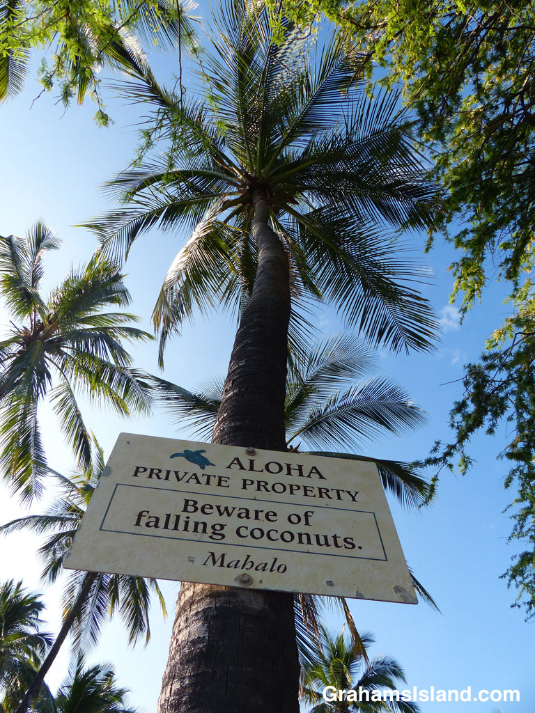 This view is the best for determining if any coconuts are falling. A roundish object getting rapidly larger is a good sign that they are indeed earthbound. Getting such a photo is not without danger, but that’s all part of life in the tropics.