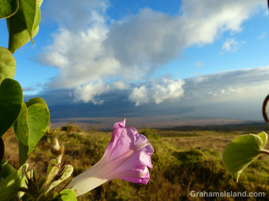 Common morning glory This common morning glory (Ipomoea purpurea) was twined on a fence alongside the mountain road, overlooking the Kohala coast. Like Loading...