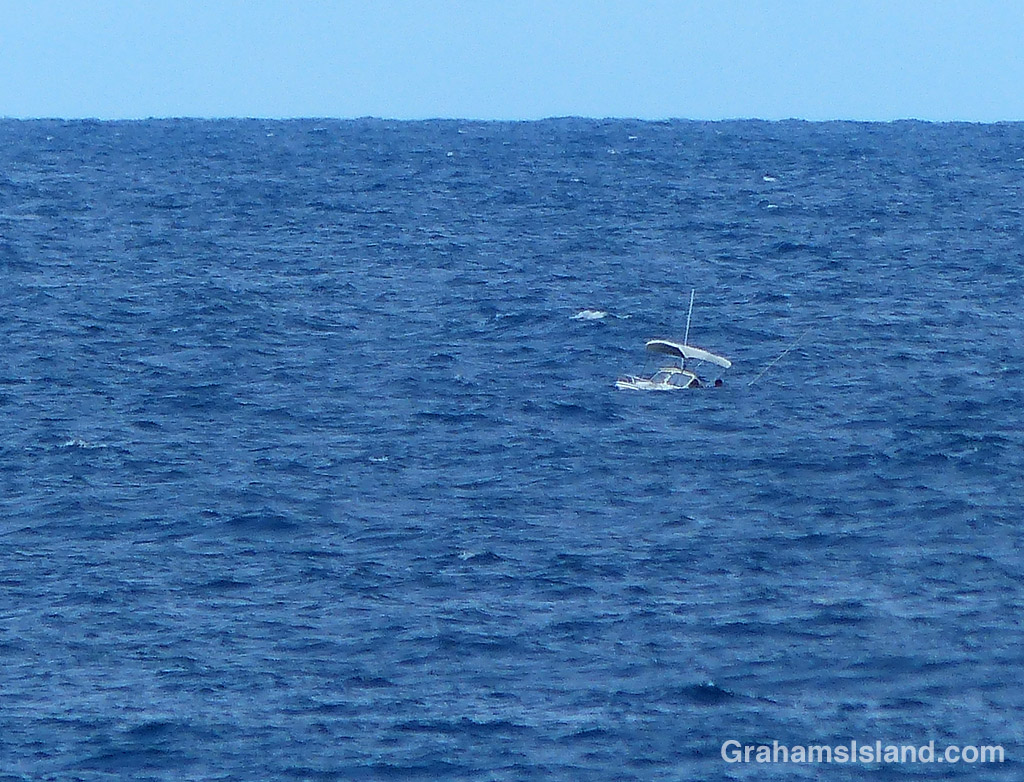 Not sinking This small boat, chugging along the North Kohala coast, kept disappearing, then popping up again. As a marker of the action of waves and swell, it always catches my attention, possibly because I’ve been in that situation many times myself. Like Loading...