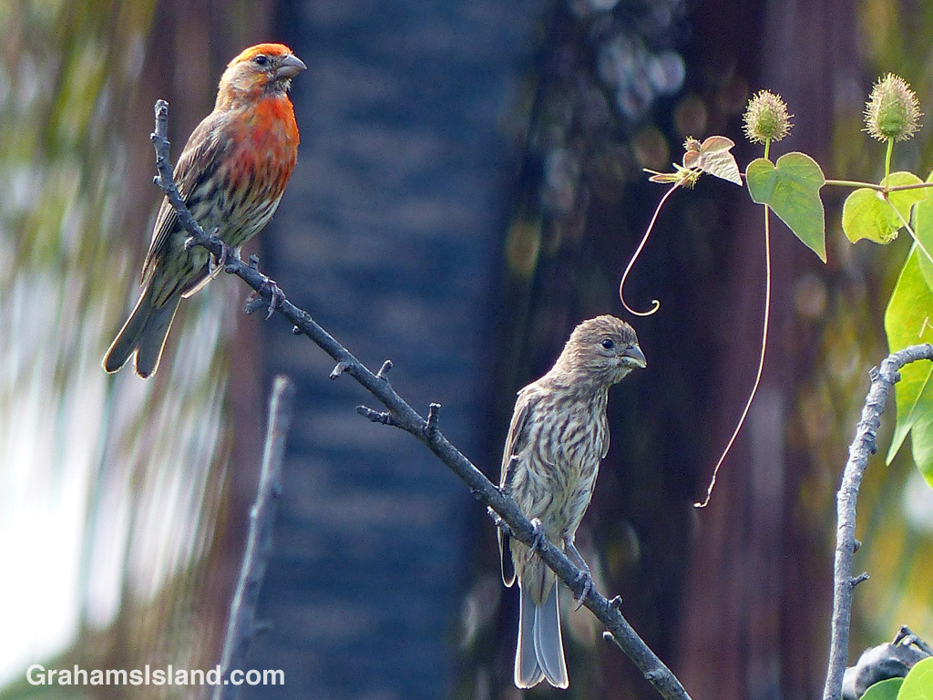 This pair of house finches, the male on the left and female on the right, was flitting about Pu’uhonua o Hōnaunau National Historical Park. They’re common birds here, as in many other places, but there’s something about this photo that I’m really happy with.