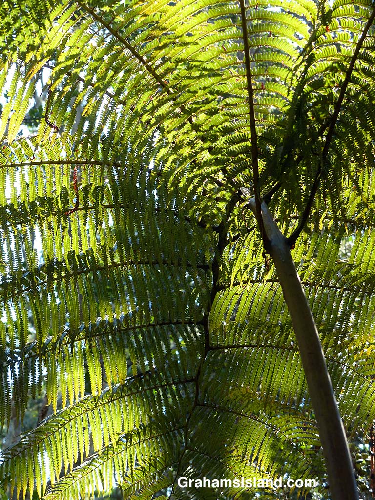 Looking up at light and shadows playing on a Hapu’u fern.