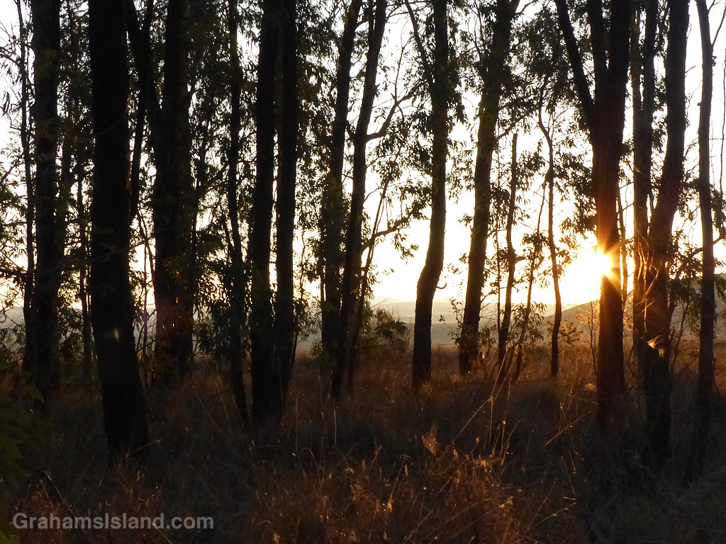 Silhouetted trees A stand of trees, off Old Saddle Road, is silhouetted by early morning sunlight. Like Loading...