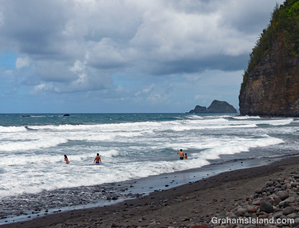 Pololu beach looks like an inviting place to get in the water, especially if you get hot on the hike down. But it’s a very dangerous spot to get in the water with strong rip currents. Local knowledge helps, but even locals get into trouble now and again. One of those places that looks inviting, but only up to a point.