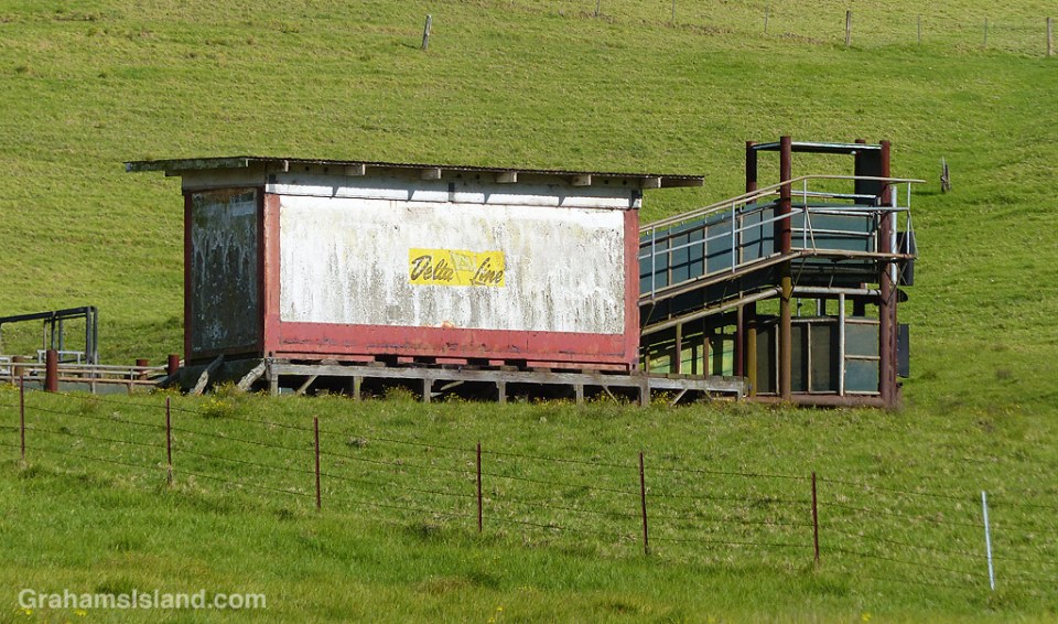 As old Saddle Road winds upward from Waimea it passes through ranch land. This corral is clearly a going concern as evidenced by the loading ramps and surrounding fencing, but my eye is always drawn to the weathered ‘Delta Line’ structure. I’m not sure what it once was or what its purpose is now, but it appears to be in regular use.