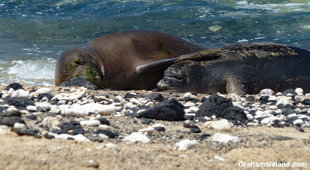 A few weeks back, I posted (here) about a new monk seal pup that had recently been born on the Big Island. I’m happy to report that the mother and pup both continue to do well.