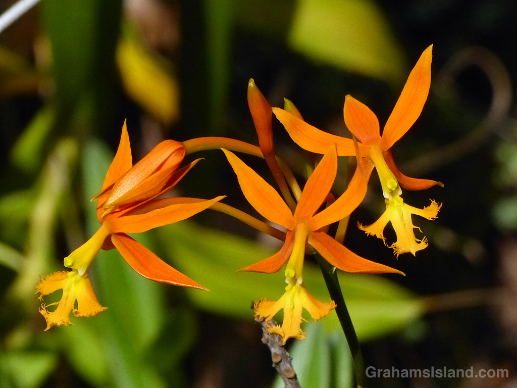 This epidendrum macrocarpum orchid was blooming at Hawaii Tropical Botanical Garden. For more information about Hawaii Tropical Botanical Garden, go to htbg.com.