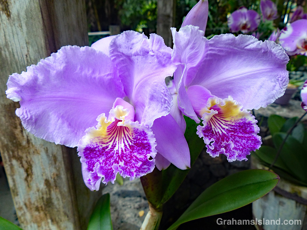 Cattleya lueddemanniana orchids are native to Venezuela. This very pretty orchid was blooming at Hawaii Tropical Botanical Garden. For more information about Hawaii Tropical Botanical Garden, go to htbg.com.