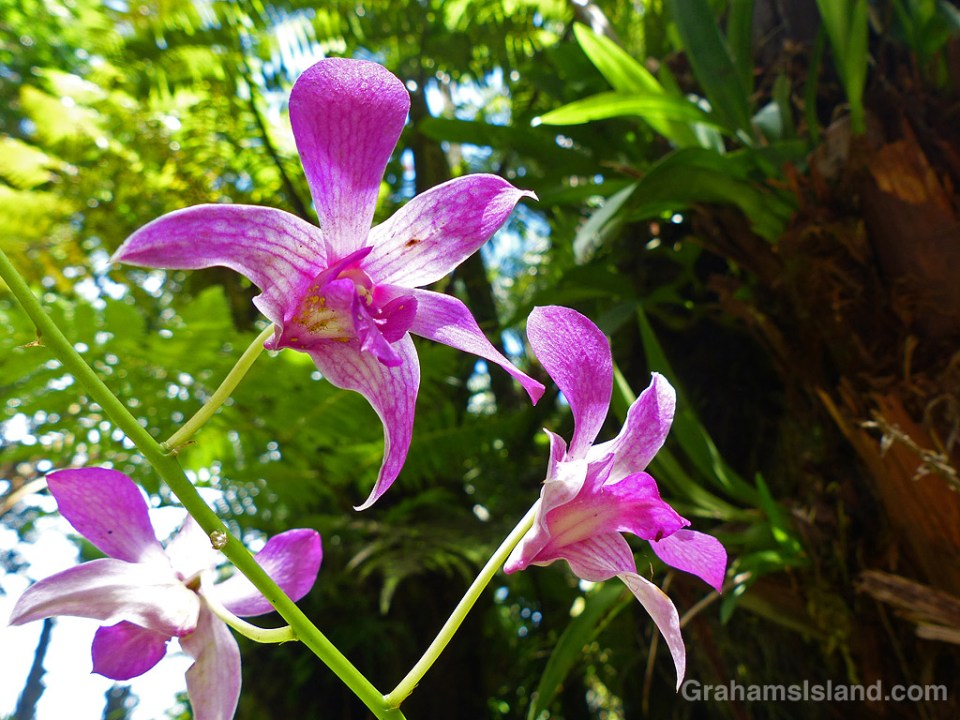 Dendrobium Jacquelyn Thomas is a hybrid orchid. I’ve seen descriptions that date it to the 1970s and others that go back to 1949. Either way, it is a popular orchid with long lasting flowers.