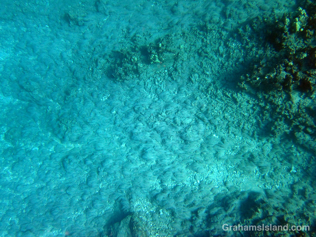 I hadn’t noticed these grasses or seaweeds before in an area where I snorkel regularly. But one day, there they were, swishing back and forth with the movement of the water. They weren’t around long, the sea floor soon being returned to its previous mix of sand, rock. and coral.