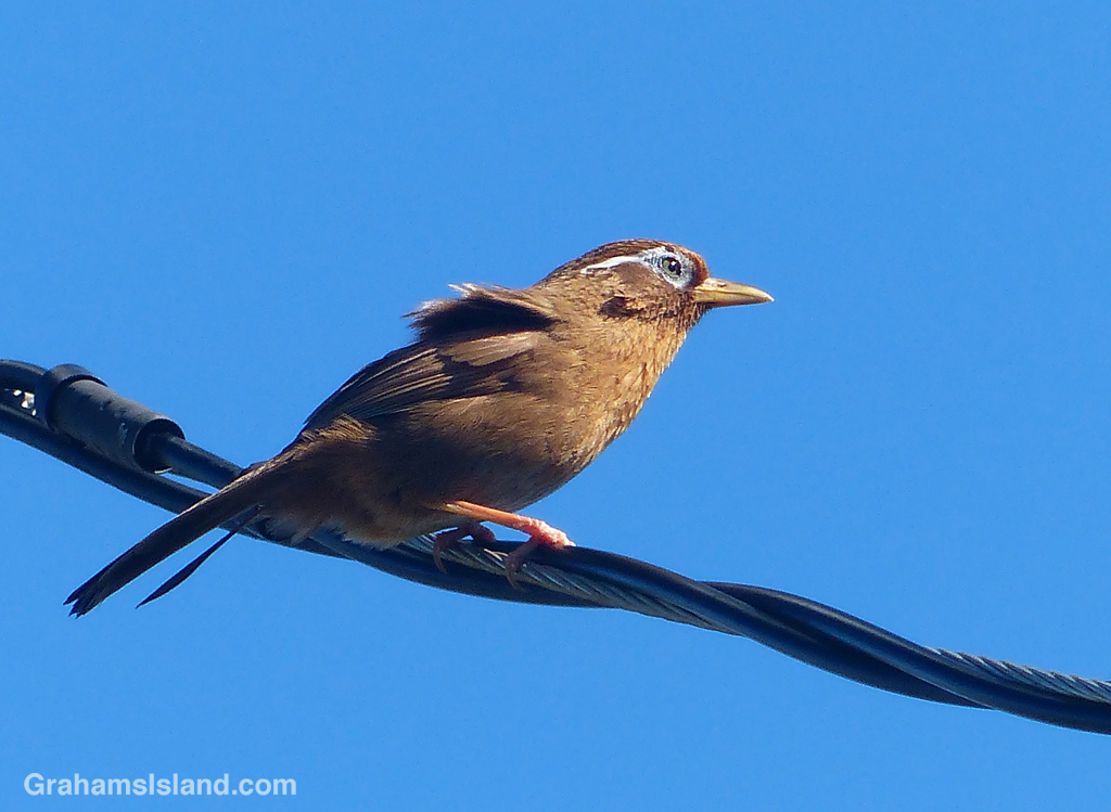 Easily identified with its distinctive eye markings and loud calls, the melodious laughingthrush was thought to have been introduced to Hawaii by Chinese immigrants in the early 1900s.
