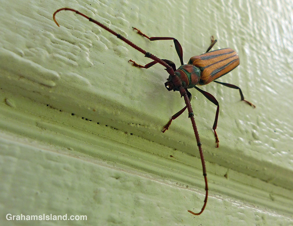 One of many longhorn beetles, so called for obvious reasons. While they do damage, at least they don’t usually take out the whole tree. There are much worse things to worry about here.
