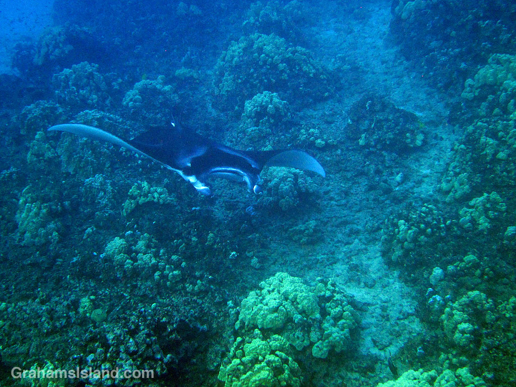On a recent snorkel, this large manta ray made an appearance. It cruised around close to the coral outcroppings before heading north. I don’t chase mantas, or any other fish really, as most anything in the water can leave me behind at any time it wants to.