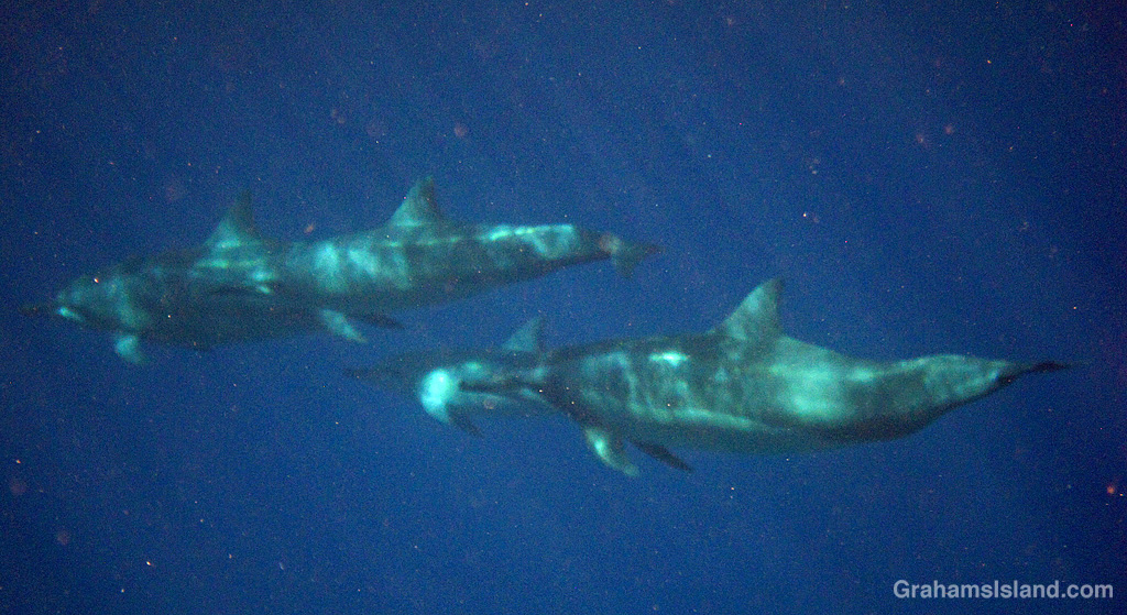 The water was murky so I didn’t get good photos, but since this is the first in-the-water photo of any kind that I’ve got of dolphins, I thought I’d post it anyway. Even though the pod passed without interacting with me, it was still a great moment to see them whizzing by with such grace and power.