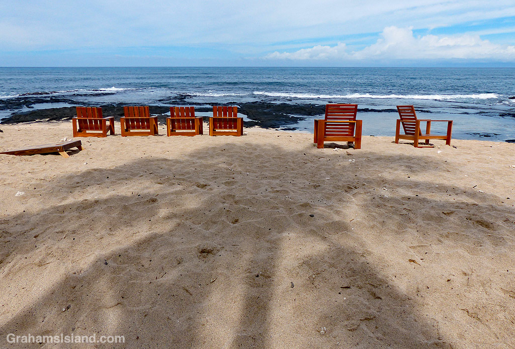 The first is a simple take on light and dark, or light and shadow. On a recent walk along the shoreline, the shadow of a palm tree imposed on a sunny beach, deserted except for empty chairs.
