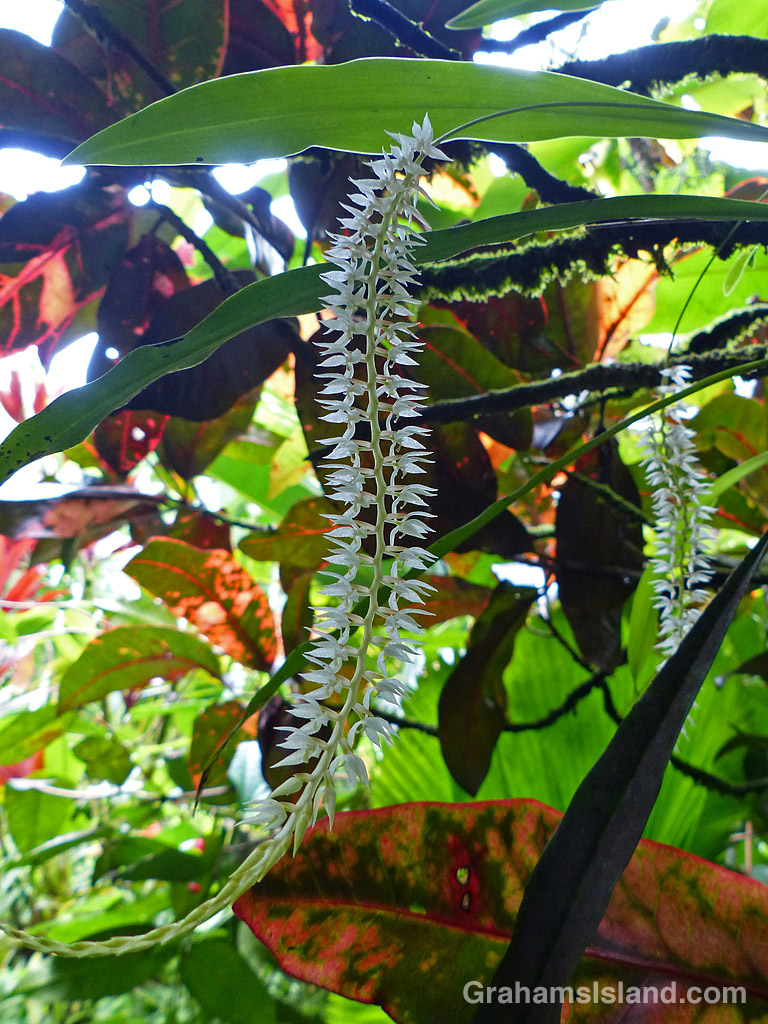 This orchid is a native of Borneo and the Philippines and has been known in the orchid world since at least 1908. This one was at Hawaii Tropical Botanical Garden. For more information about Hawaii Tropical Botanical Garden, go to htbg.com.