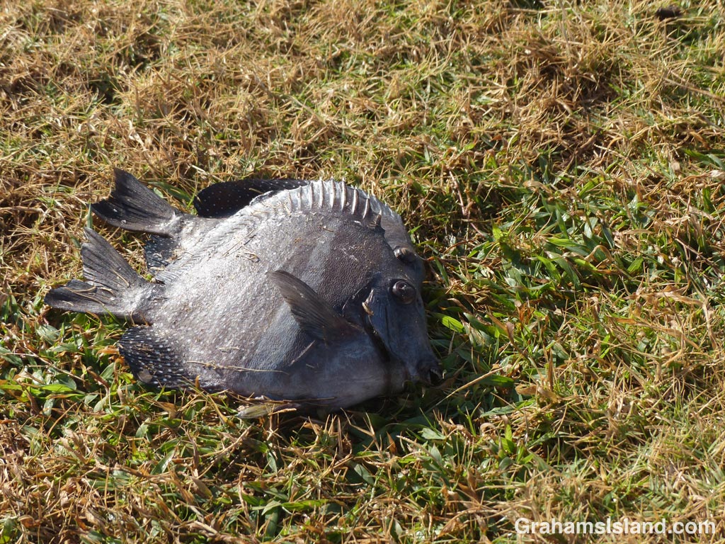A pair of whitespotted surgeonfish caught, but not wanted.