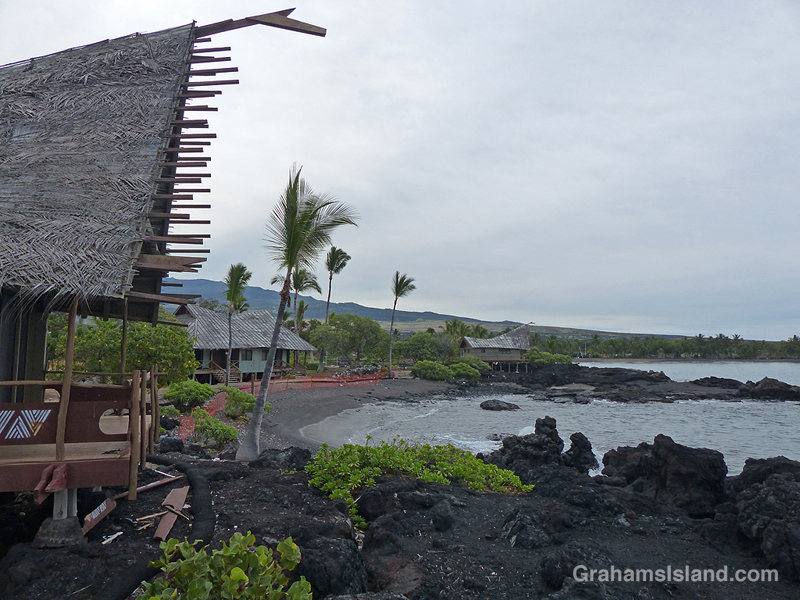 One of those properties was the Kona Village Resort, situated to the north of Hualalai Resort. Damage to the resort’s properties was sufficient to force its closure. The property then sank into the swamp that is insurance settlements and financial shenanigans. During this time, the buildings deteriorated.