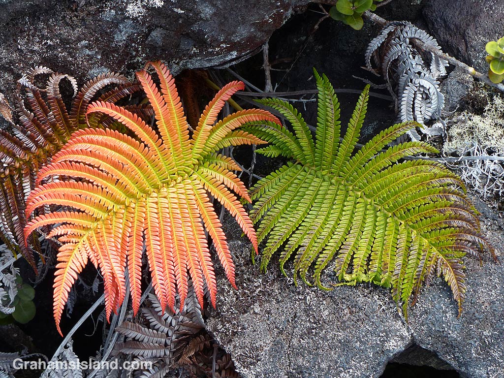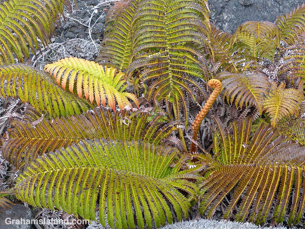 The amaumau fern (Sadleria cyatheoides) is endemic to Hawaii and grows in a variety of areas from wet forests to recent lava flows. I saw these on the Powerline Trail, off of Saddle Road, where the elevation is above 5,000 feet.