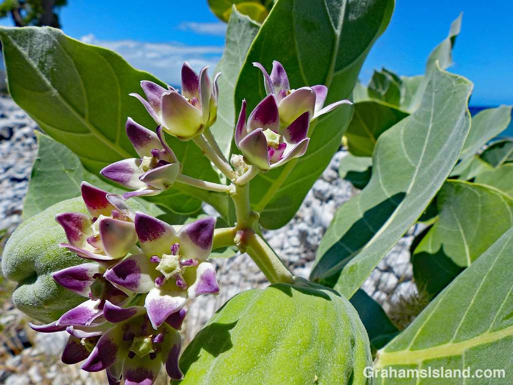 Calotropis procera, also known as Apple of Sodom, is a member of the milkweed family. A native of parts of Africa and Asia, it’s another of the many invasive plants that have found a home in Hawaii. On the plus side, it’s a host plant for Monarch butterfly caterpillars, while the butterflies themselves feed on the flowers.
