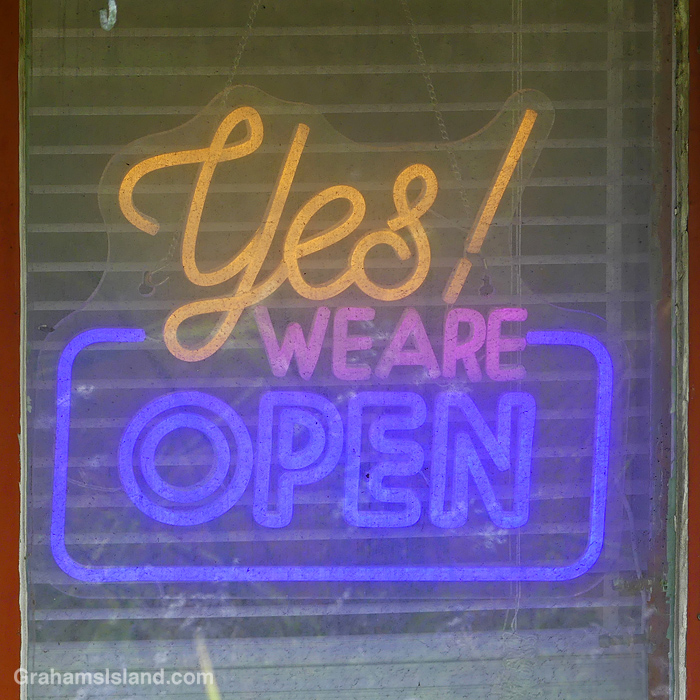 In the second photo, we are amethyst even if the look of this sign in a window doesn’t exactly lure one in.