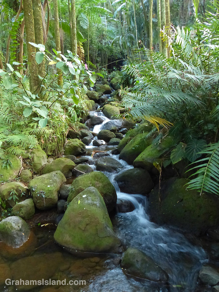 The main part of the cathedral is on the other side of the tower. I took this view because I was walking by on this street and I liked the traditional look of the church contrasting with the tropical foliage!