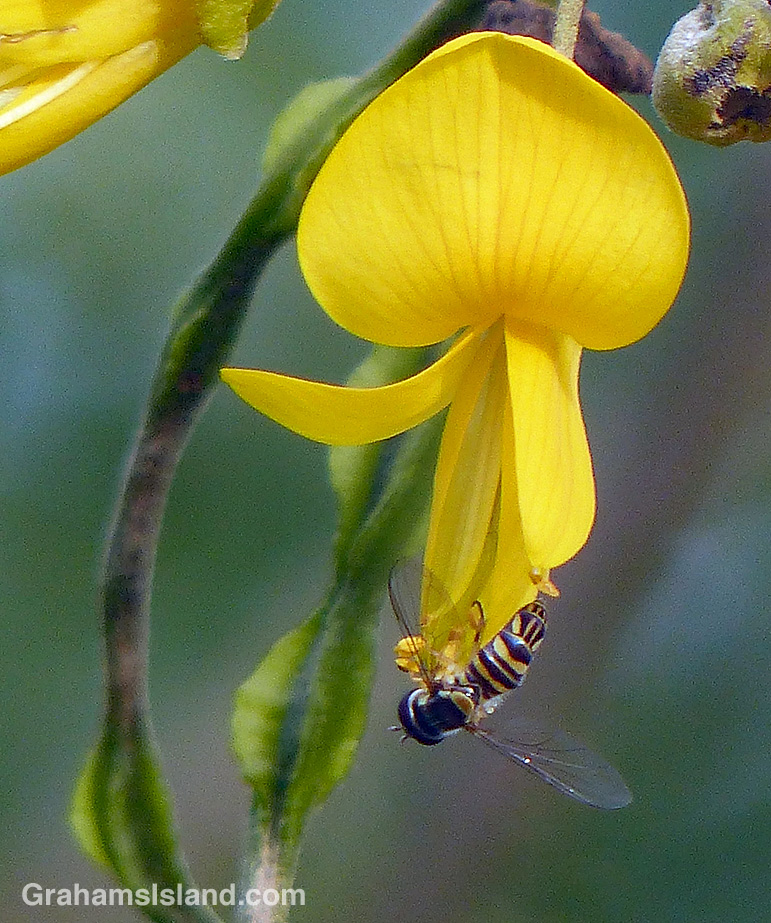 A Citrus Swallowtail butterfly.An Allograpta Obliqua Hoverfly on a Mamane flower.A Leafcutter Bee on Aptenia Cordifolia flowers.A view of the base of the petioles of a Traveler’s Palm (Ravenala madagascariensis).A Gold Dust Day Gecko on a red bamboo stem.A cow extricating itself from a jam!