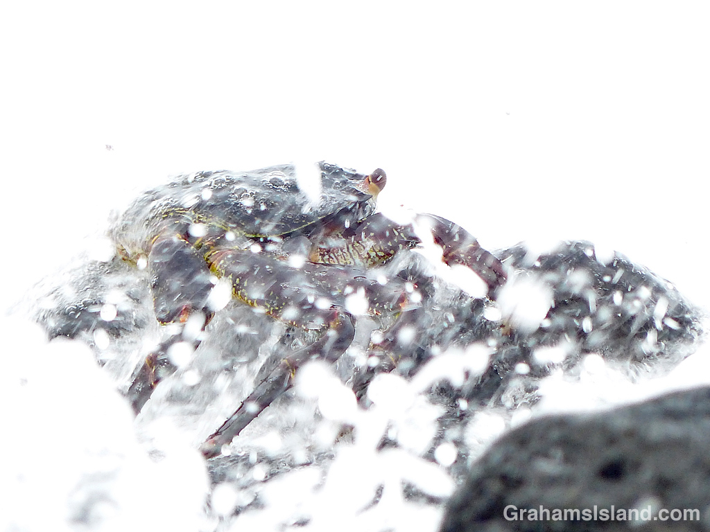 The top photo shows the best of the close-ups. The second one gives an idea of the crab’s perfect coloration for its environment.