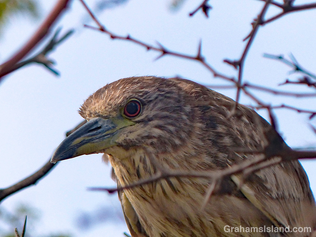 This is my second offering on the theme, which also features light and dark, but also stillness and movement – the stillness of the herons (there’s a second one in the background) and the movement of the rippling water. I like how the second set of ripples disturbs the first set and the reflections of the palm trees.