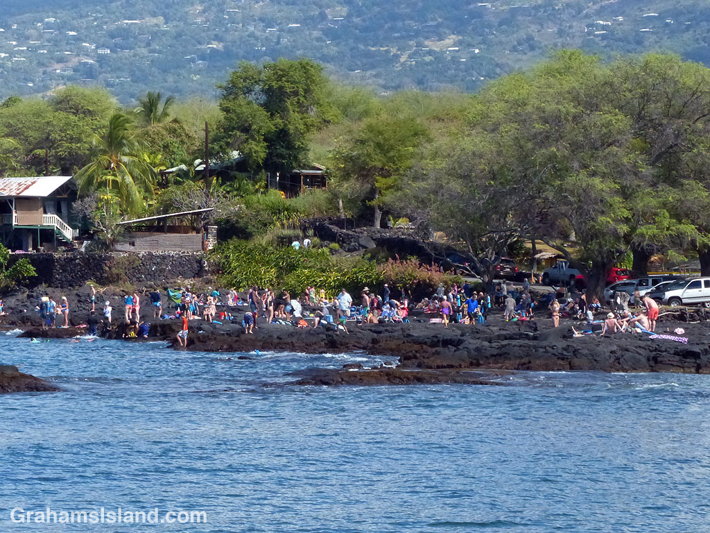 Walking down to swim at Lapakahi Historical Park, I spotted a humpback not far offshore. When we got in the water, the whale was still there. It wasn’t very active, just milling around, as they sometimes do. Also, in the same general area, was the same woman who had been with us on New Year’s Eve. We swam out and headed in her direction.