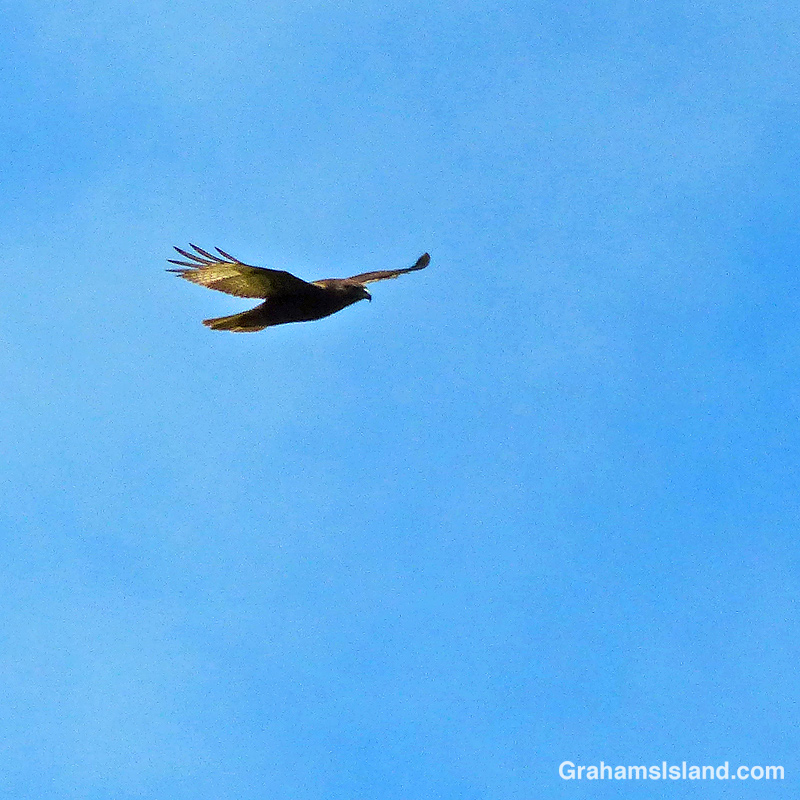So this photo, while not exactly stellar, is a first for me. Again this was a bird circling above the neighborhood. I tried to get photos, but as they tend to do, this one drifted away out of sight. I went round to the other side of the house, hoping to spot it again, and was surprised to see it again, not only gliding back in my general direction, but losing altitude as it did so.