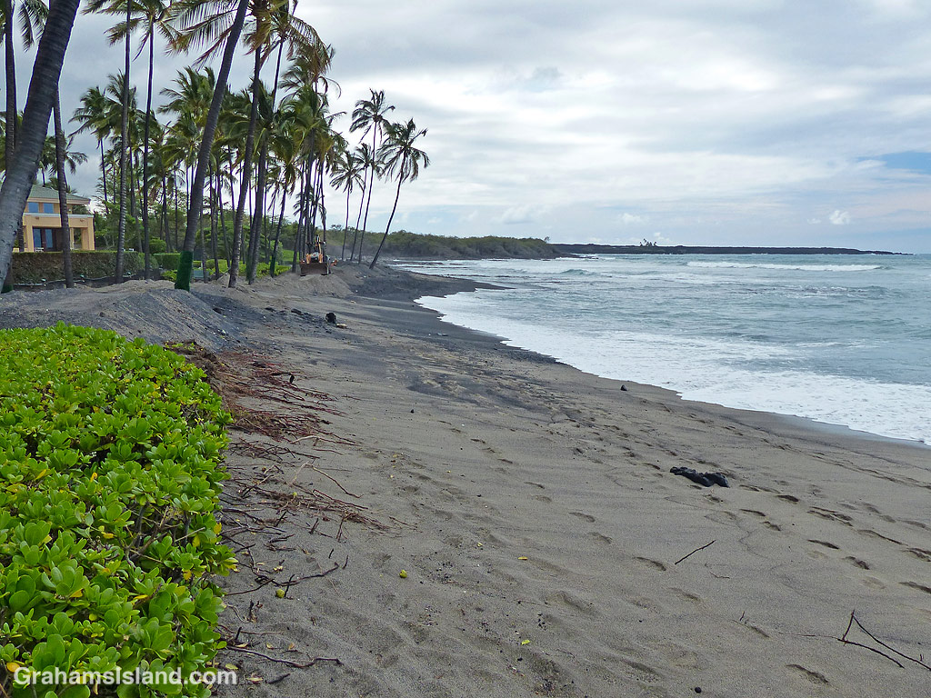The traditional tools for playing on the beach are a bucket and spade. On my recent walk down at Kiholo, I saw this person going several steps better. Name me one kid who wouldn’t love to have a backhoe at the beach.