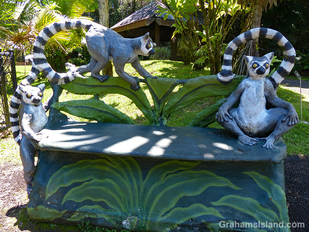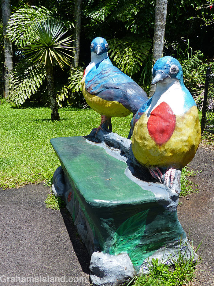 I’ve posted photos of the benches at Pana’ewa Rainforest Zoo before (here and here), but realized I had some others available, so here they are. I don’t know whether they’re unique or not, but I’ve never seen anything like them elsewhere.