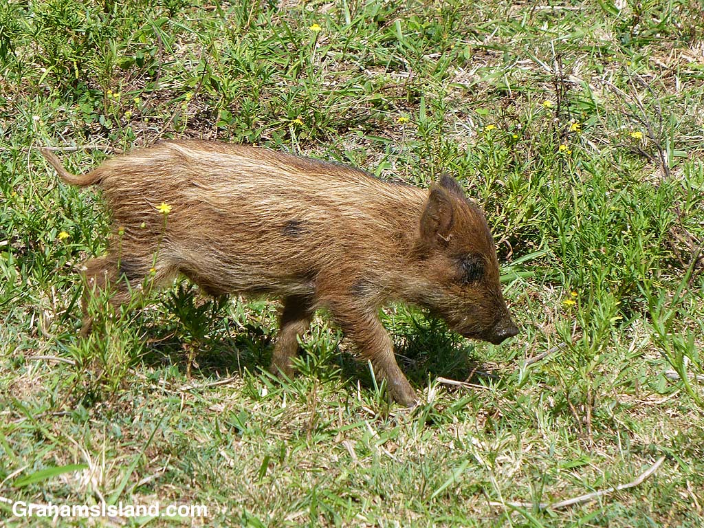 I saw this piglet wandering through a cow pasture. It is likely the offspring of a feral pig, but there were no other pigs around. At this size and age, it would probably still have been drawing on its mother’s milk. Instead, it was grubbing through cow pies in search of worms and bugs.